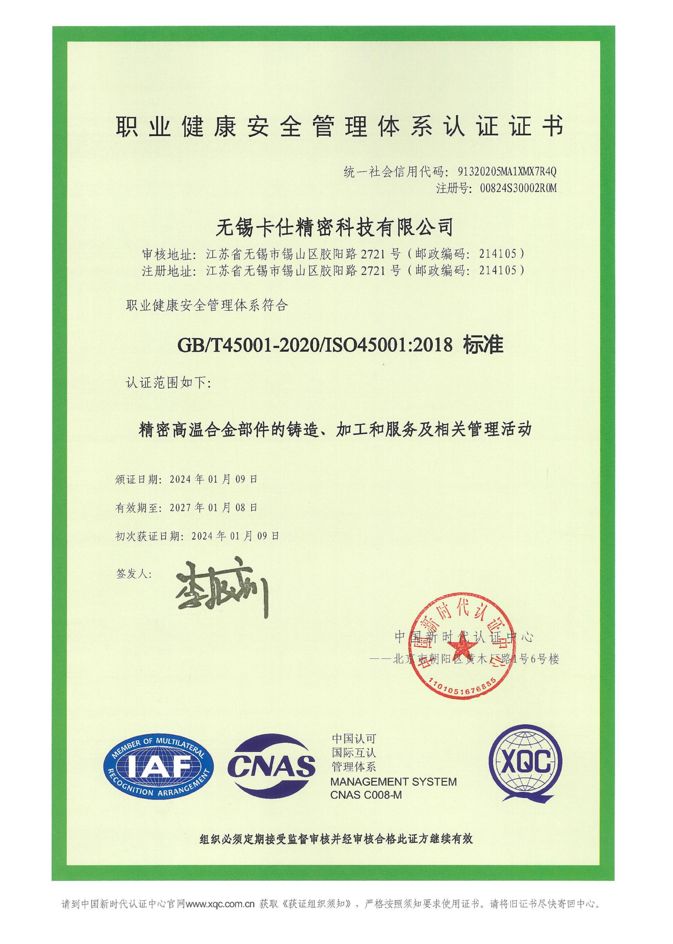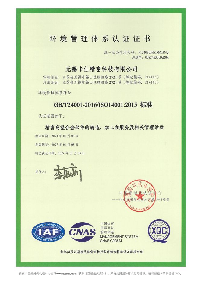 无锡卡仕精密科技有限公司于2018年12月在无锡锡山经济开发区注册成立,隶属于无锡万迪动力集团。无锡万迪动力集团在上世纪70年代组建了精密铸造车间,研究开发精密铸造(失蜡铸造)生产技术,用于直升机叶片的生产;于80年代成功研发了真空熔炼工艺技术,接着在90年代从英国引进快速熔炼技术,应用于涡轮增压器中涡轮部件的生产;同时还自主研发了压叶轮的精密铸造工艺技术。