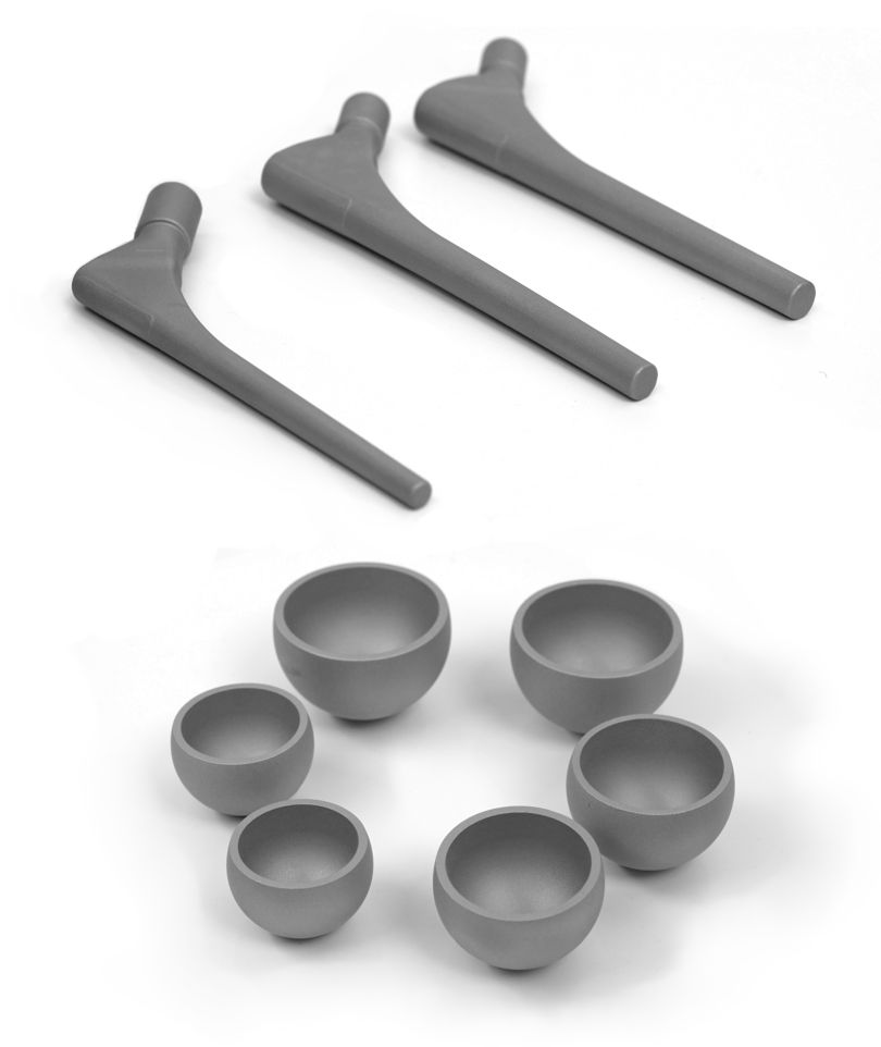 双极头外杯毛坯铸件和骨水泥柄毛坯铸件是卡仕最主要的髋关节铸件产品,同样具有尺寸精度高(机加余量可控制在0.3-0.4mm),气孔夹杂少,抗疲劳性能稳定等优点;